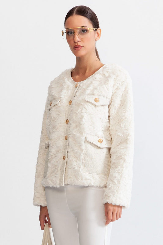 35% İndirimAltın Düğmeli Kabarık Ceket - Beyaz