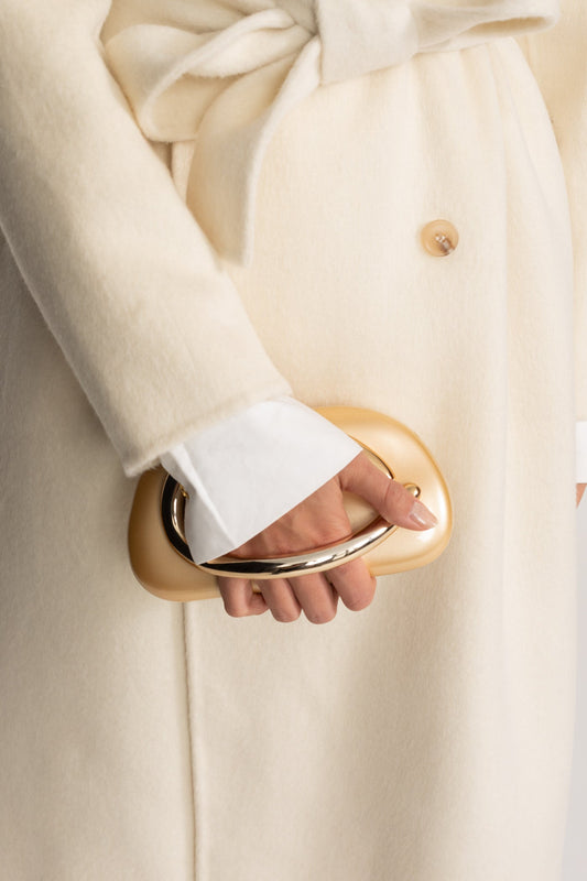 34% İndirimAltın Heykelsi Saplı Çanta – Altın