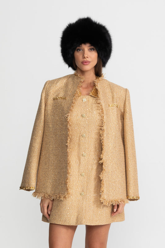 Alia Dokulu Tweed Palto, Karmaşık Payet Süslemeleri Ve Saçak Detaylarıyla - Altın