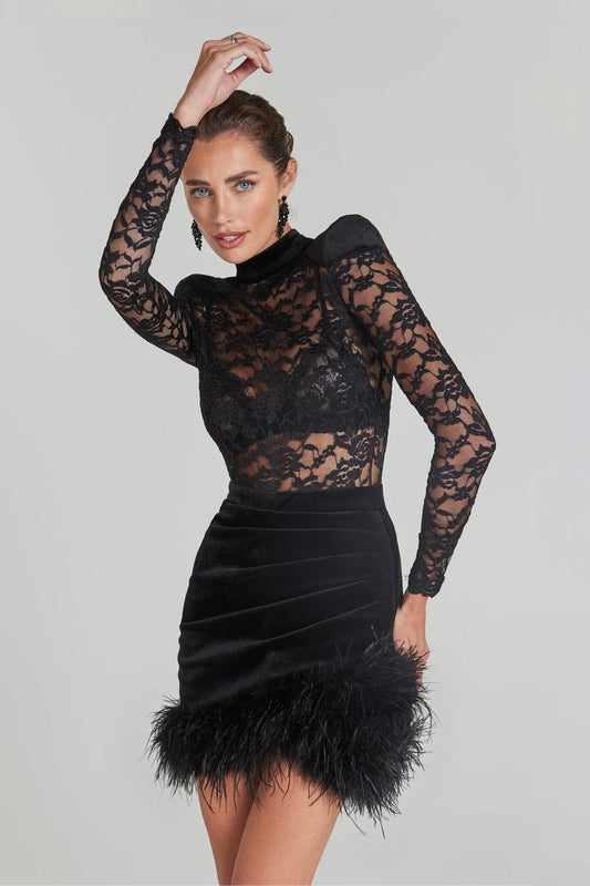 Tüy Desenli İnci Detaylı İki Parçalı Takım - Fildişi