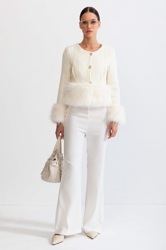 34% İndirimYün Karışımlı Sahte Kürk Manto - Beyaz