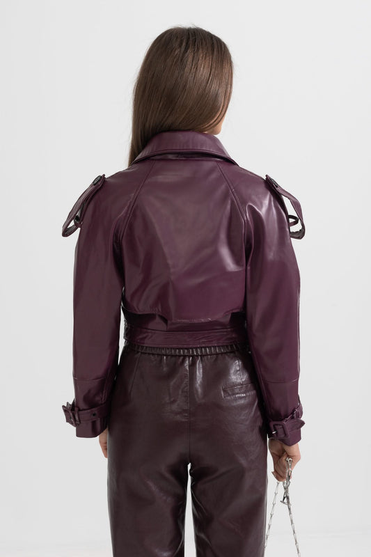 34% İndirimÇift Yaka Vegan Deri Ceket - Bordo