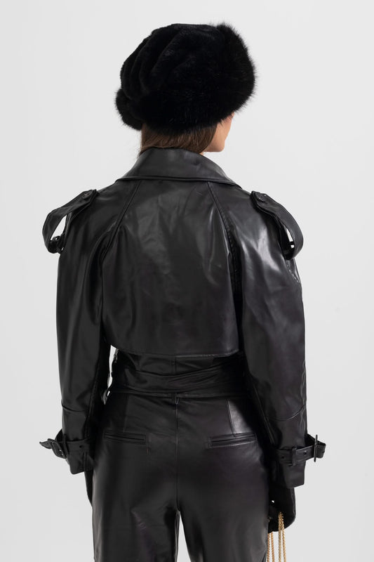 33% İndirimÇift Yaka Vegan Deri Ceket - Siyah