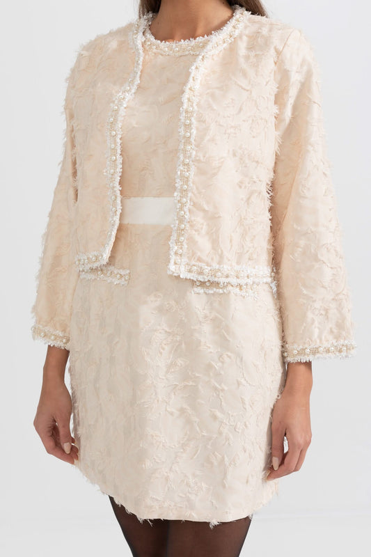Tüy Desenli İnci Detaylı İki Parçalı Takım - Fildişi