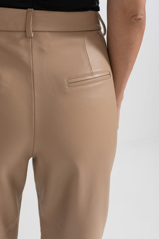 33% İndirimDekoratif Dikişli Deri Düz Paça Pantolon - Bej