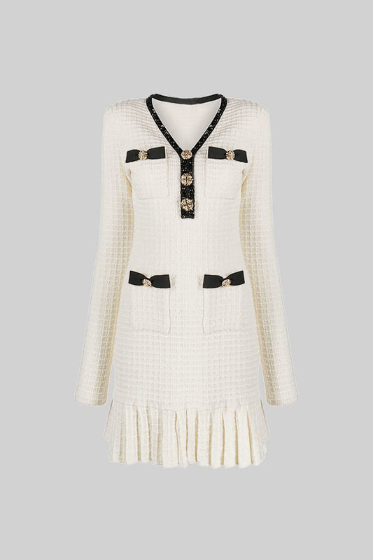34% İndirimUzun Kollu Diz Boyu Örme Elbise - Beyaz