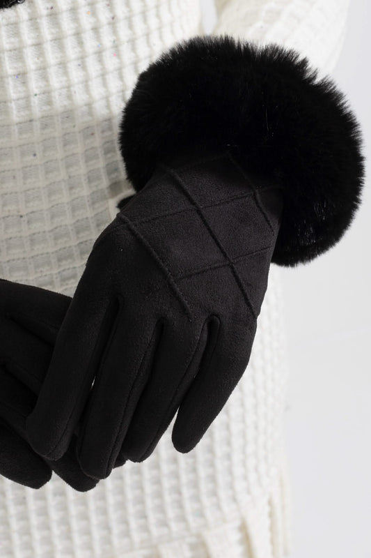 34% İndirimKürklü Süet Kapitone Eldiven - Siyah