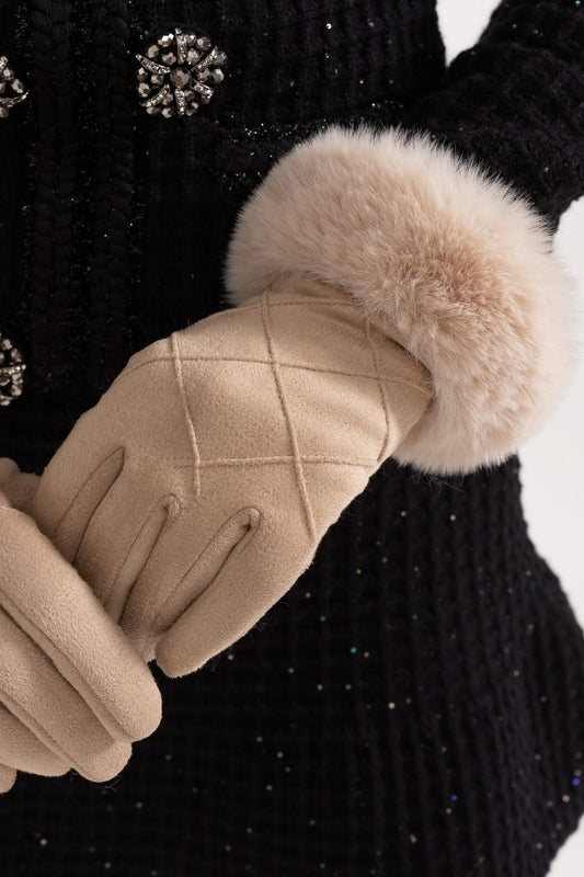 34% İndirimKürklü Süet Kapitone Eldiven - Bej