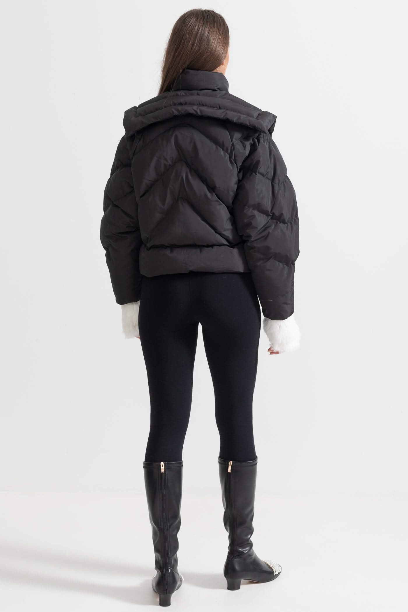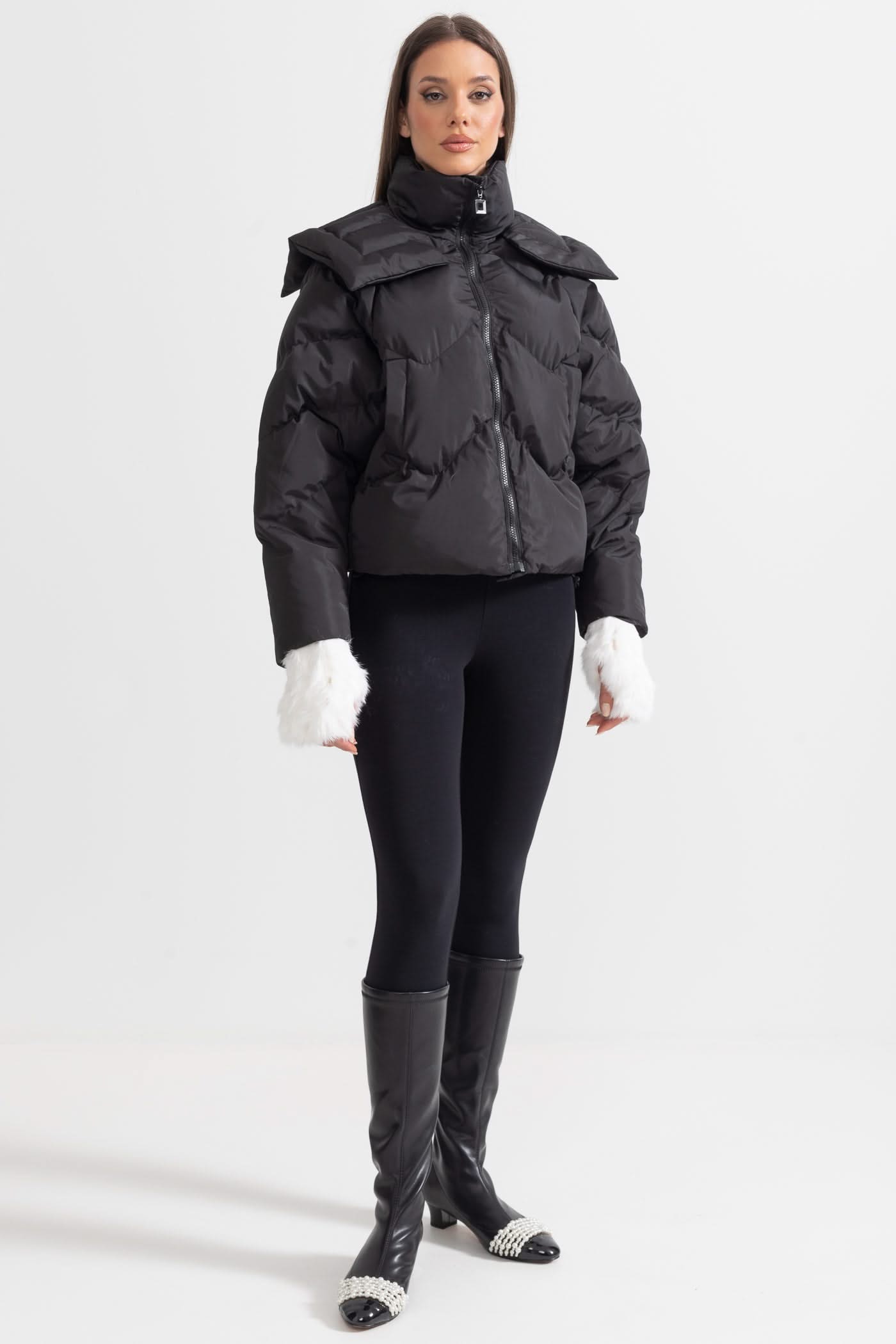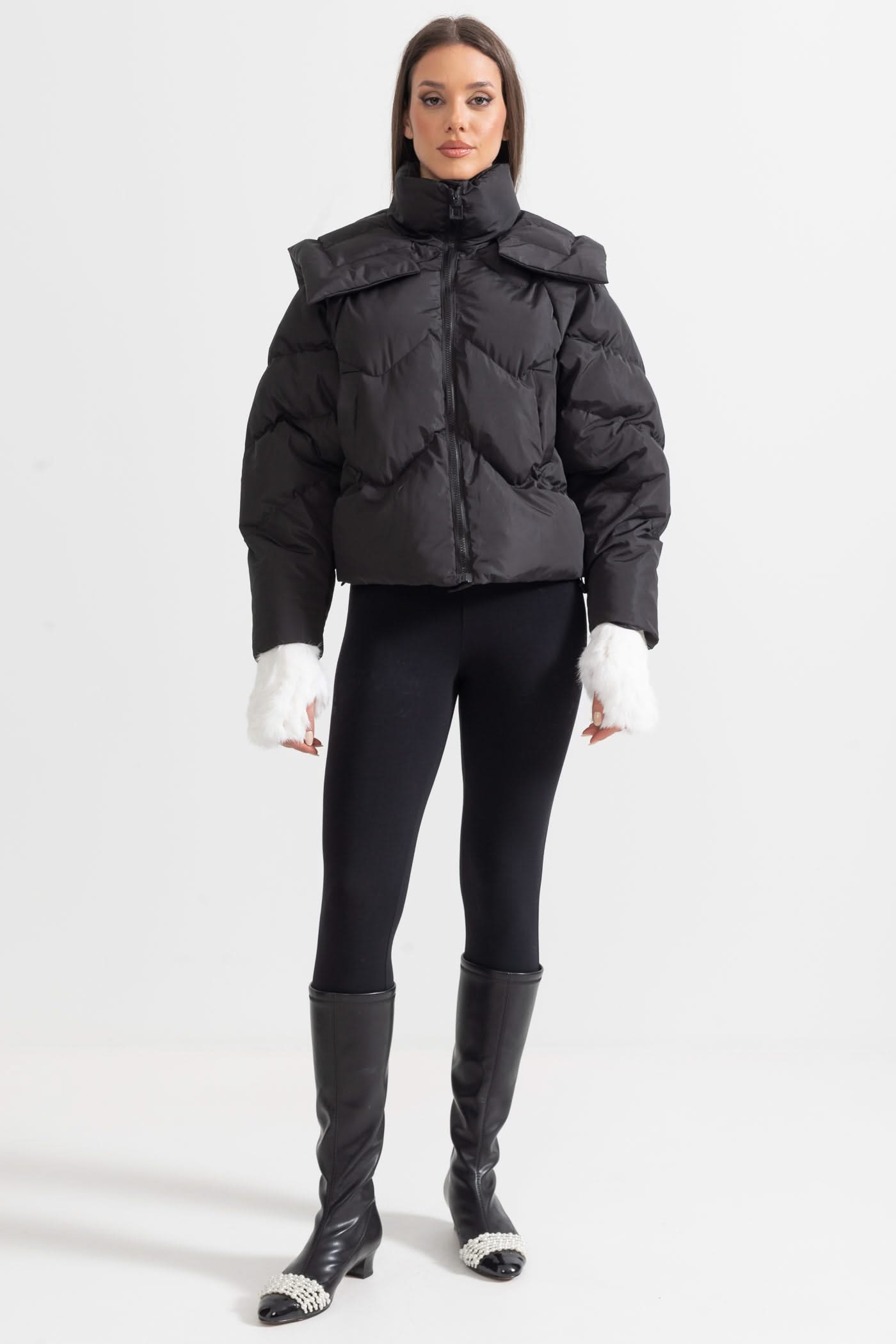Büyük Omuz Pedli Çağdaş Şişme Mont - Siyah