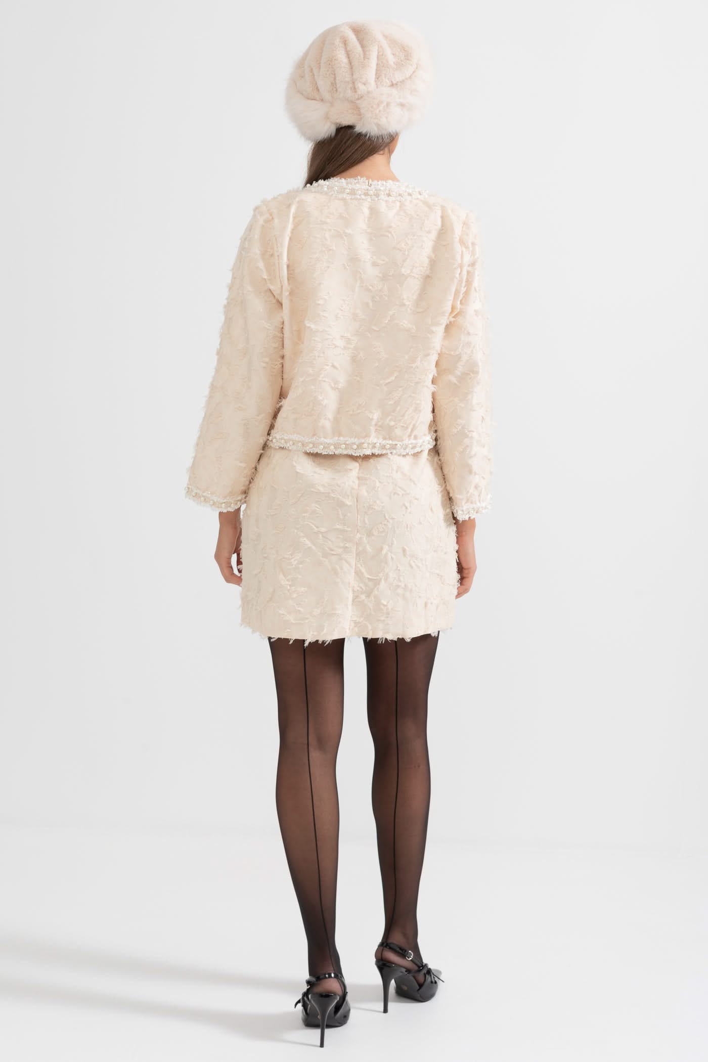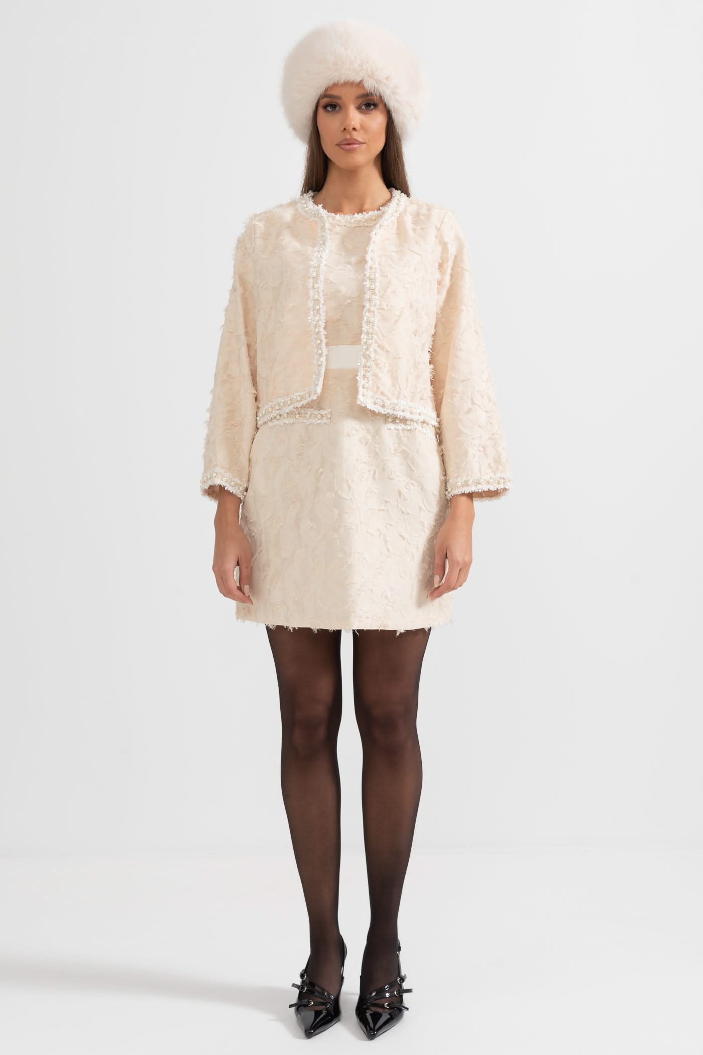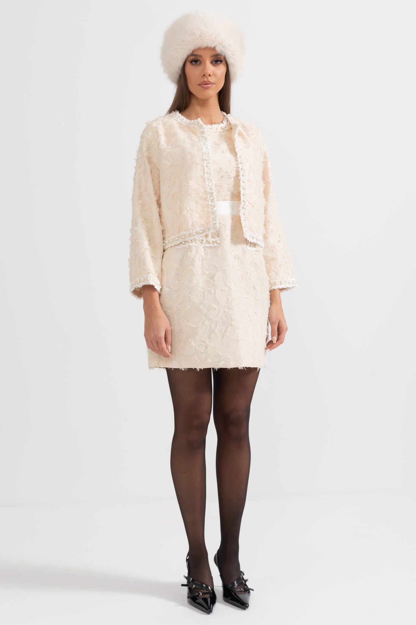Tüy Desenli İnci Detaylı İki Parçalı Takım - Fildişi
