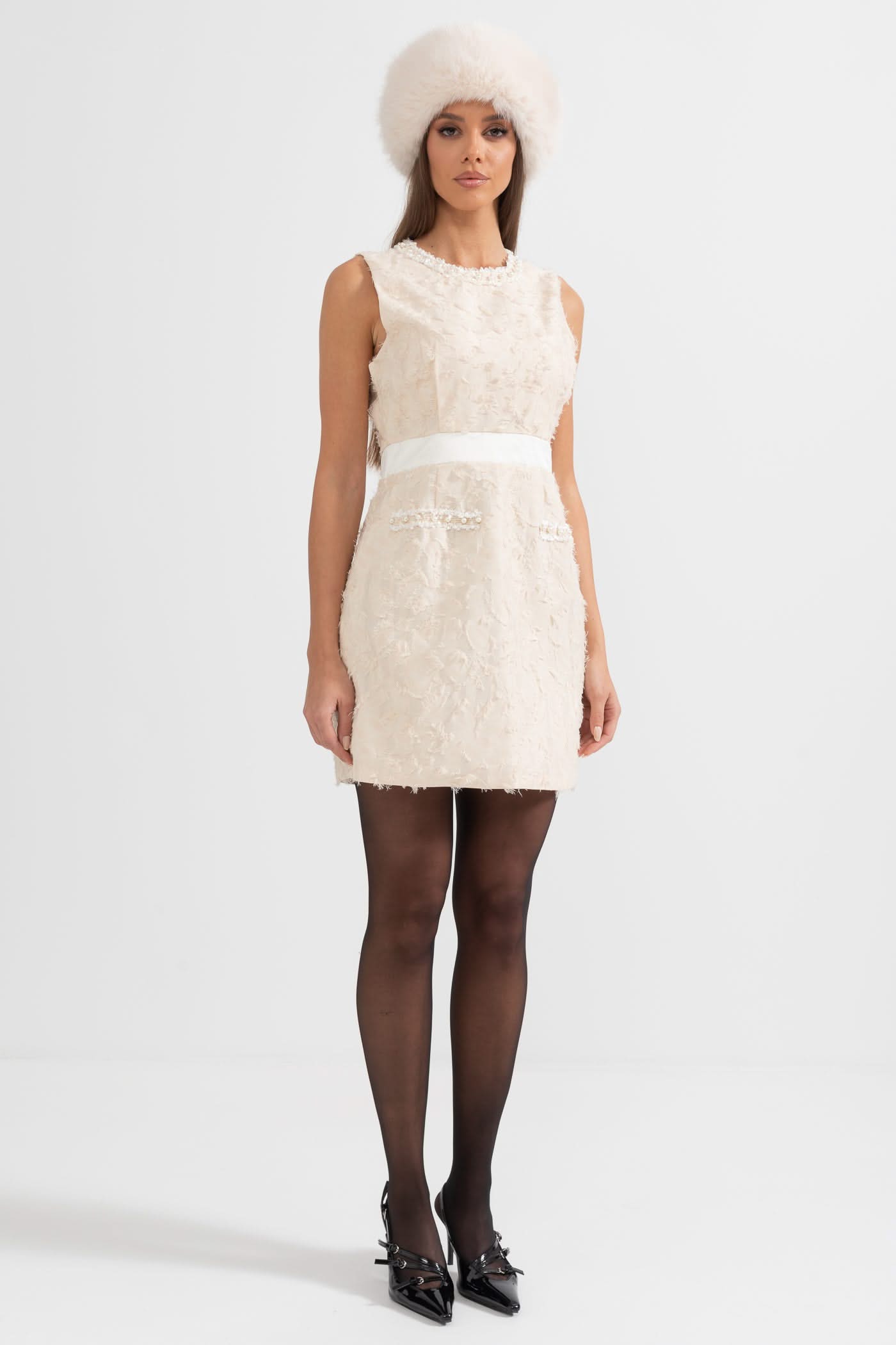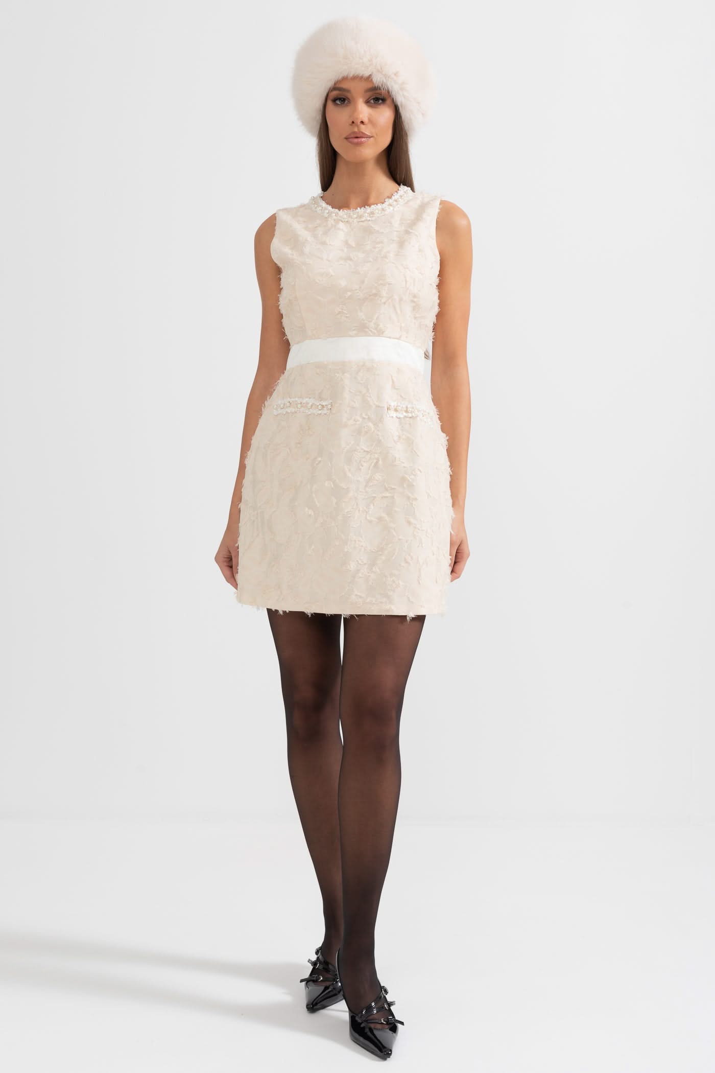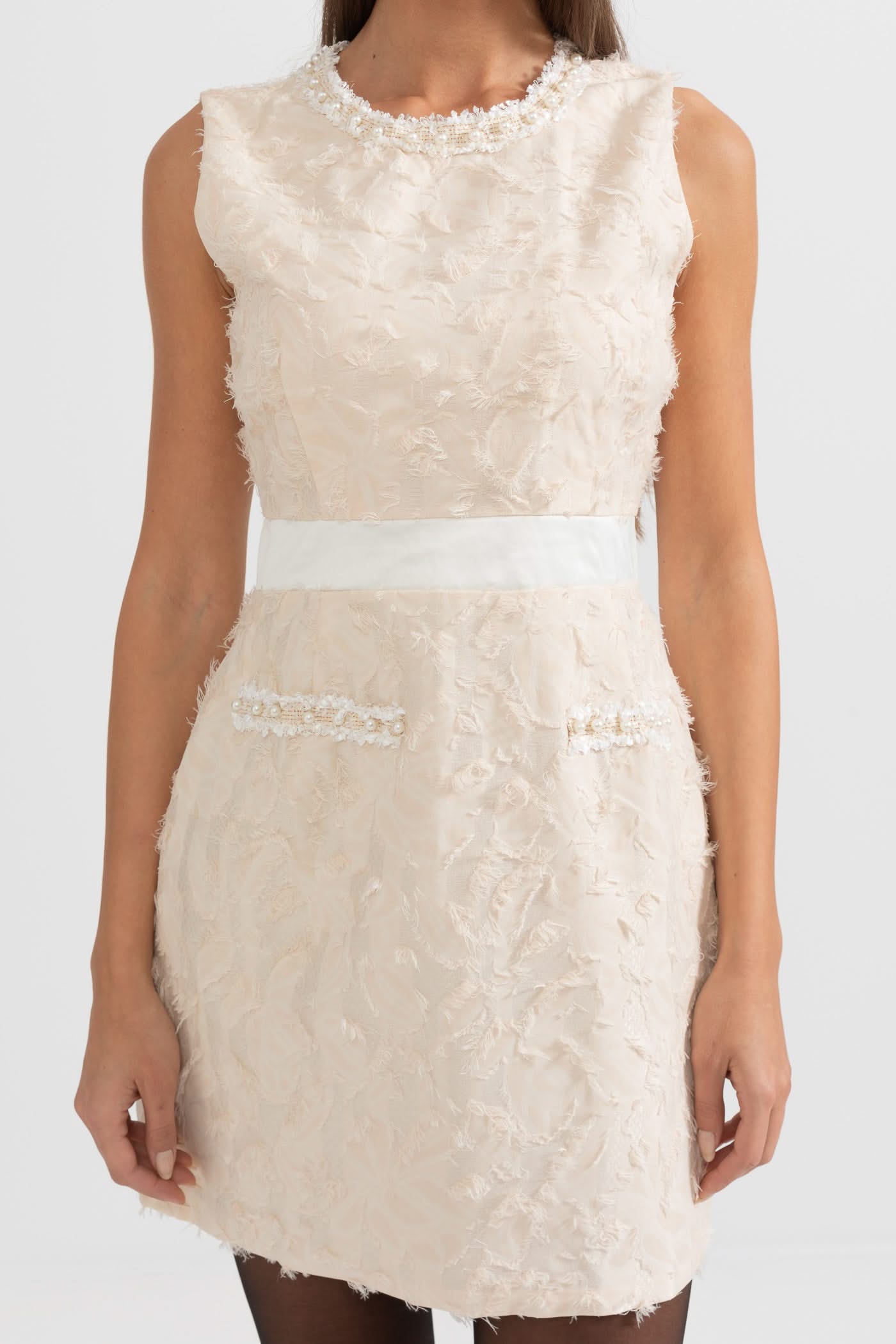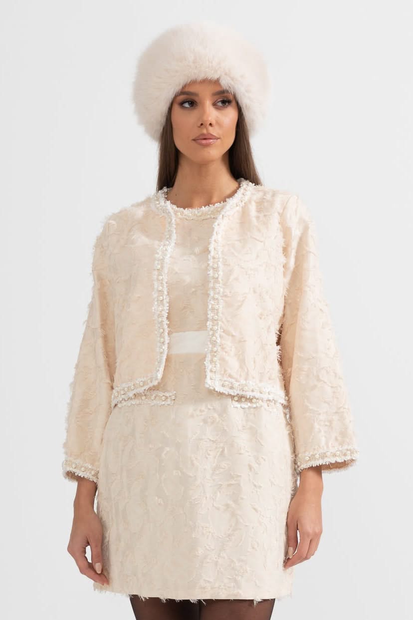Tüy Desenli İnci Detaylı İki Parçalı Takım - Fildişi