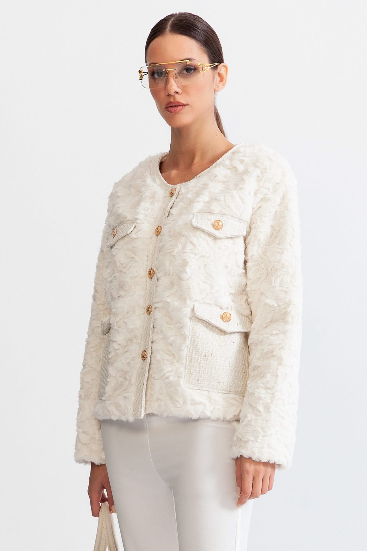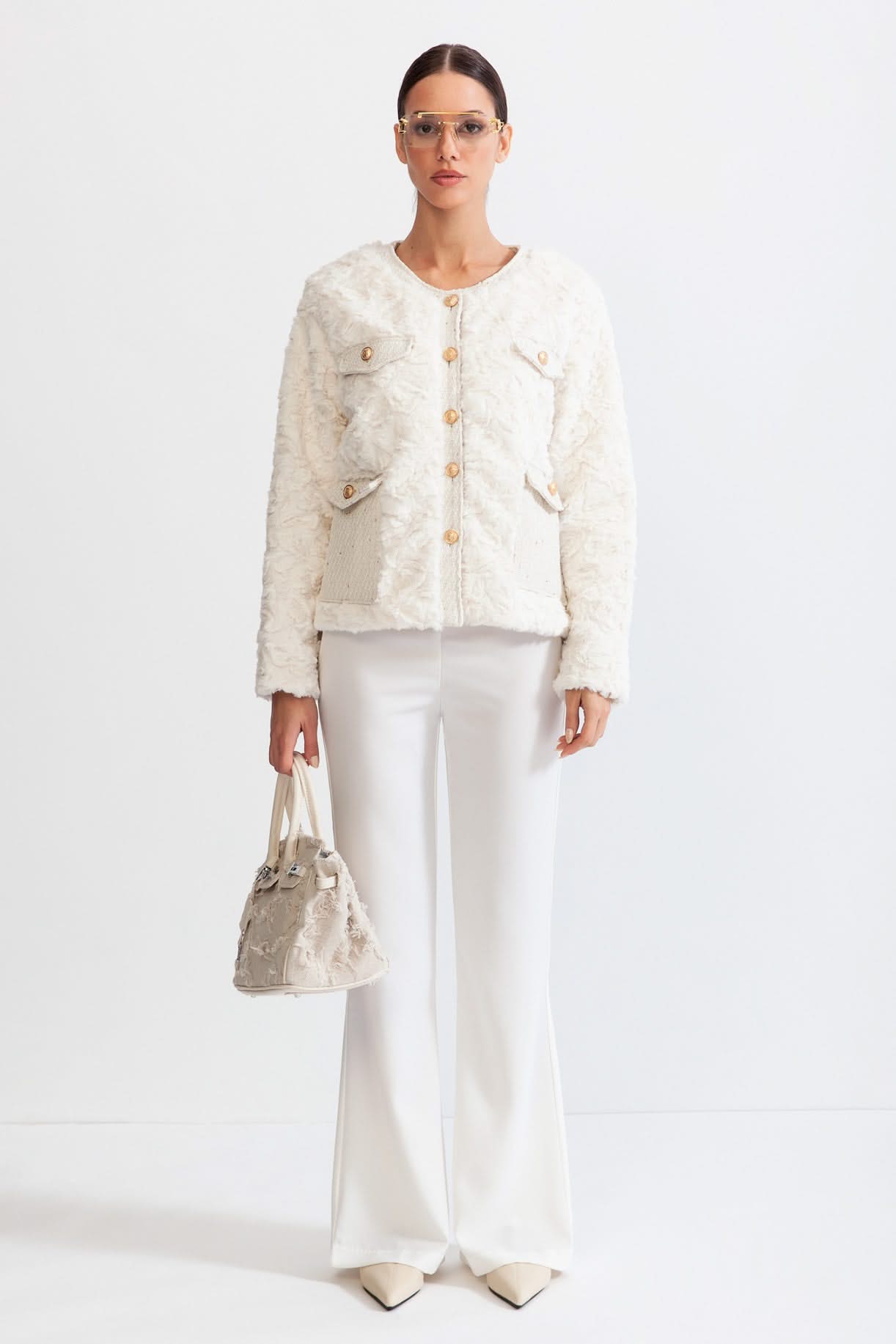 Altın Düğmeli Kabarık Ceket - Beyaz