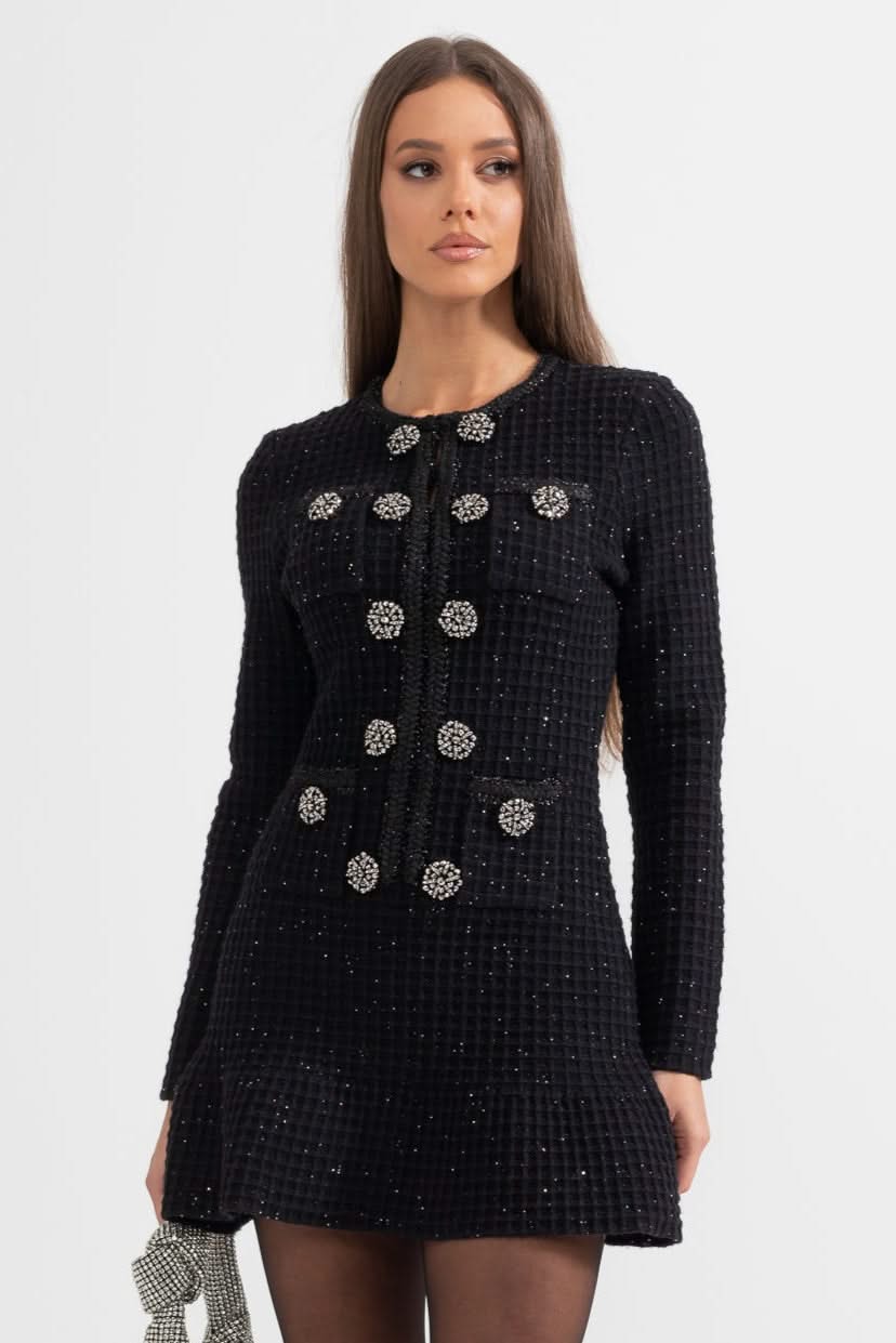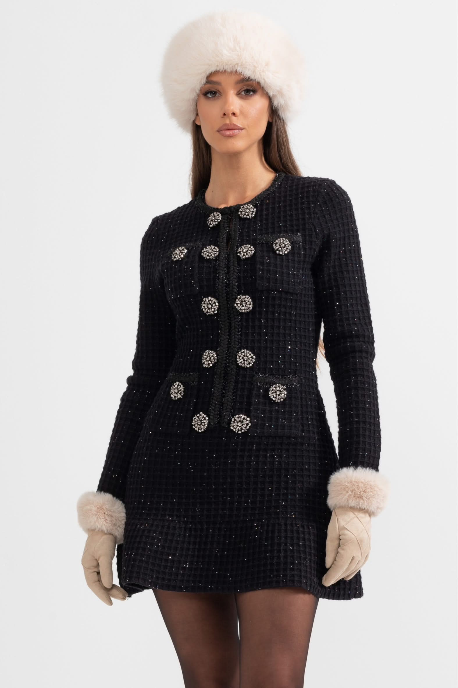 Uzun Kollu Diz Boyu Örme Elbise - Siyah