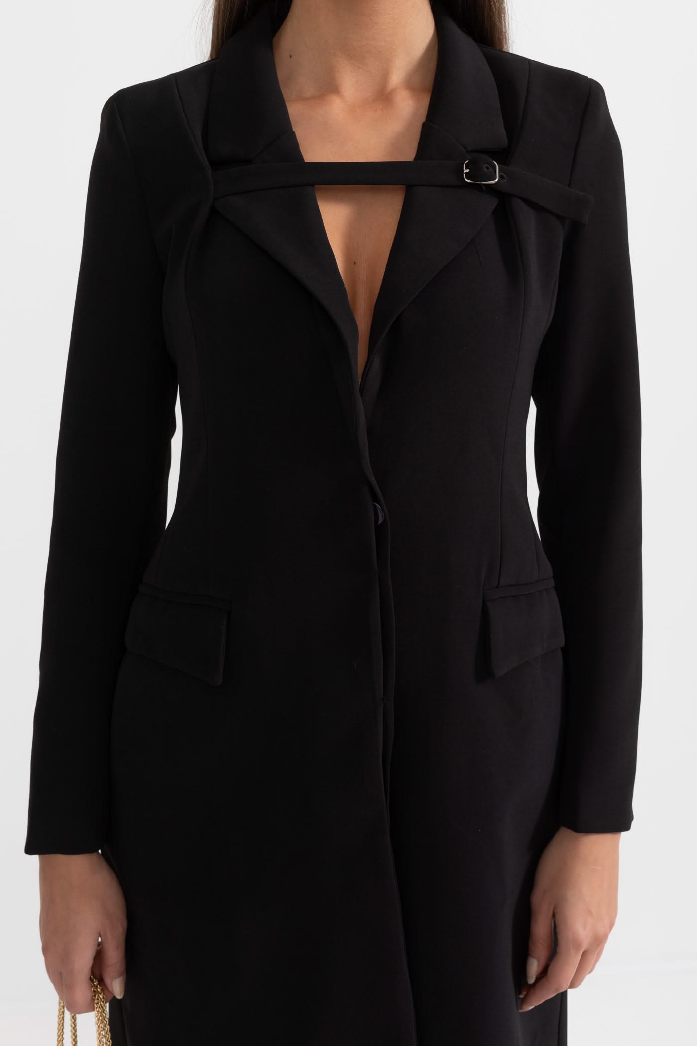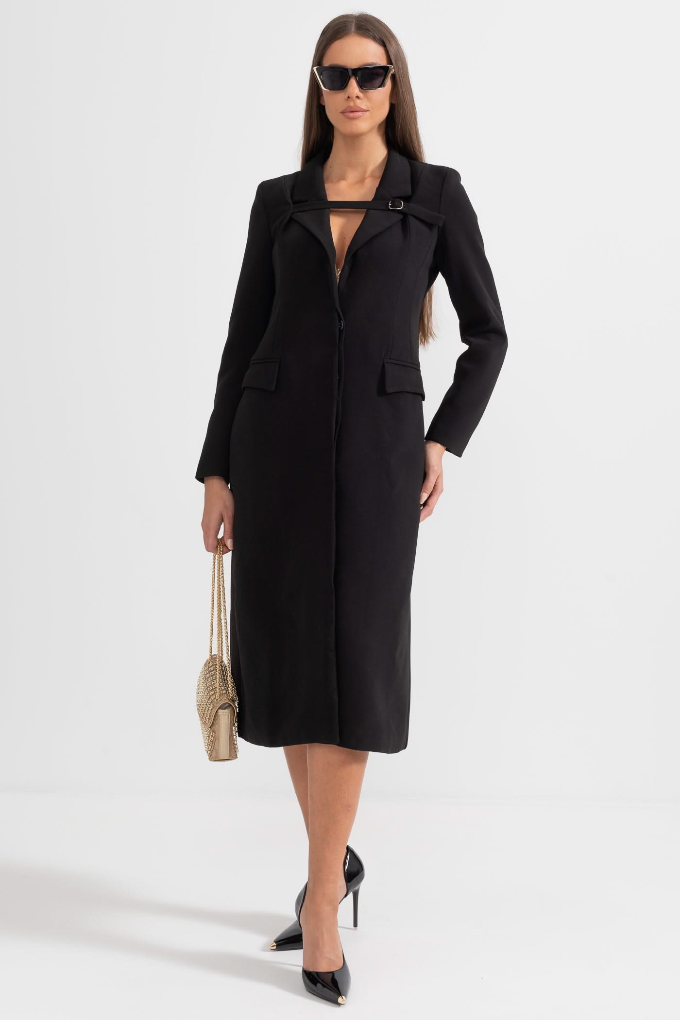 Kemerli Göğüs Vurgulu Trençkot - Siyah