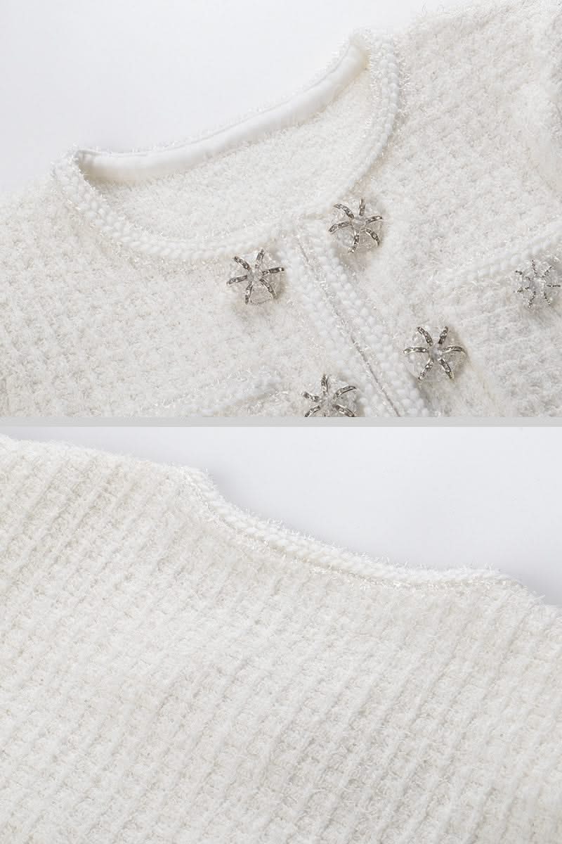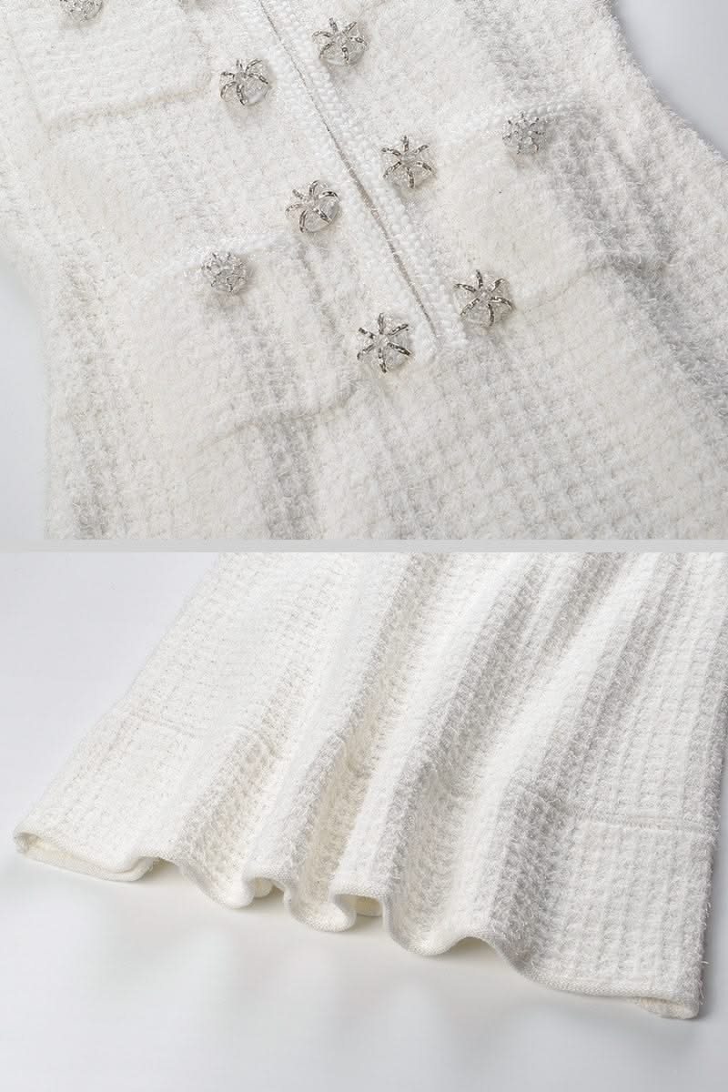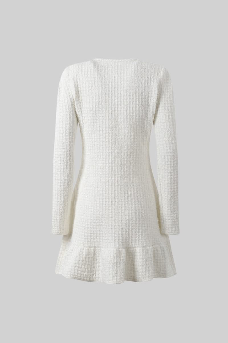 Uzun Kollu Diz Boyu Örme Elbise - Beyaz