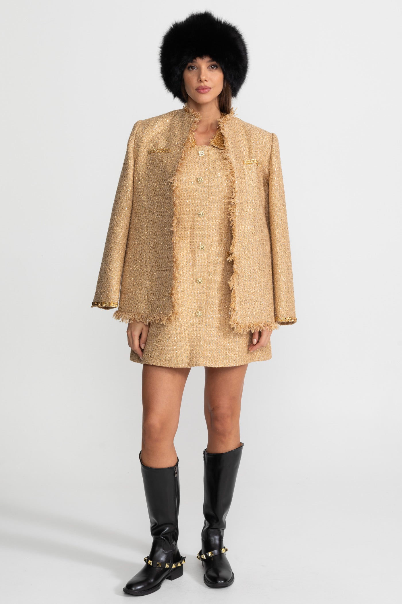 Alia Dokulu Tweed Palto, Karmaşık Payet Süslemeleri Ve Saçak Detaylarıyla - Altın