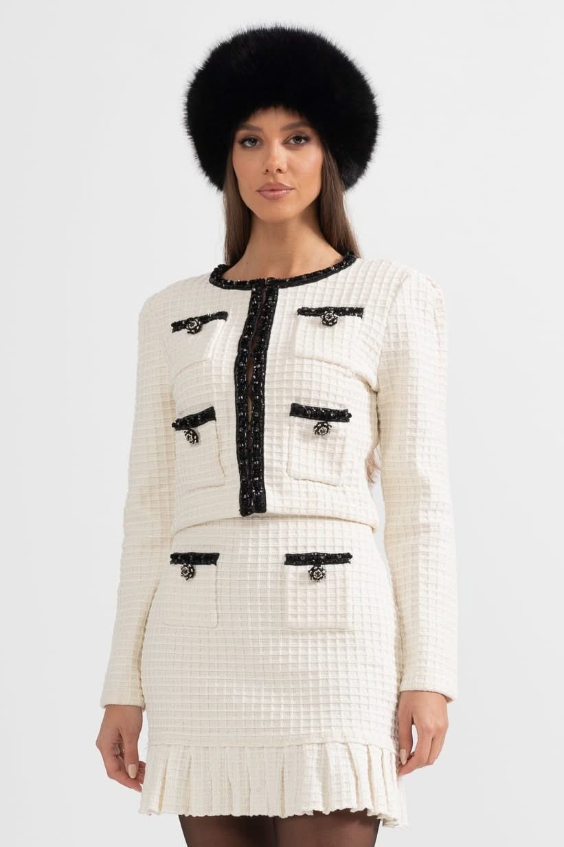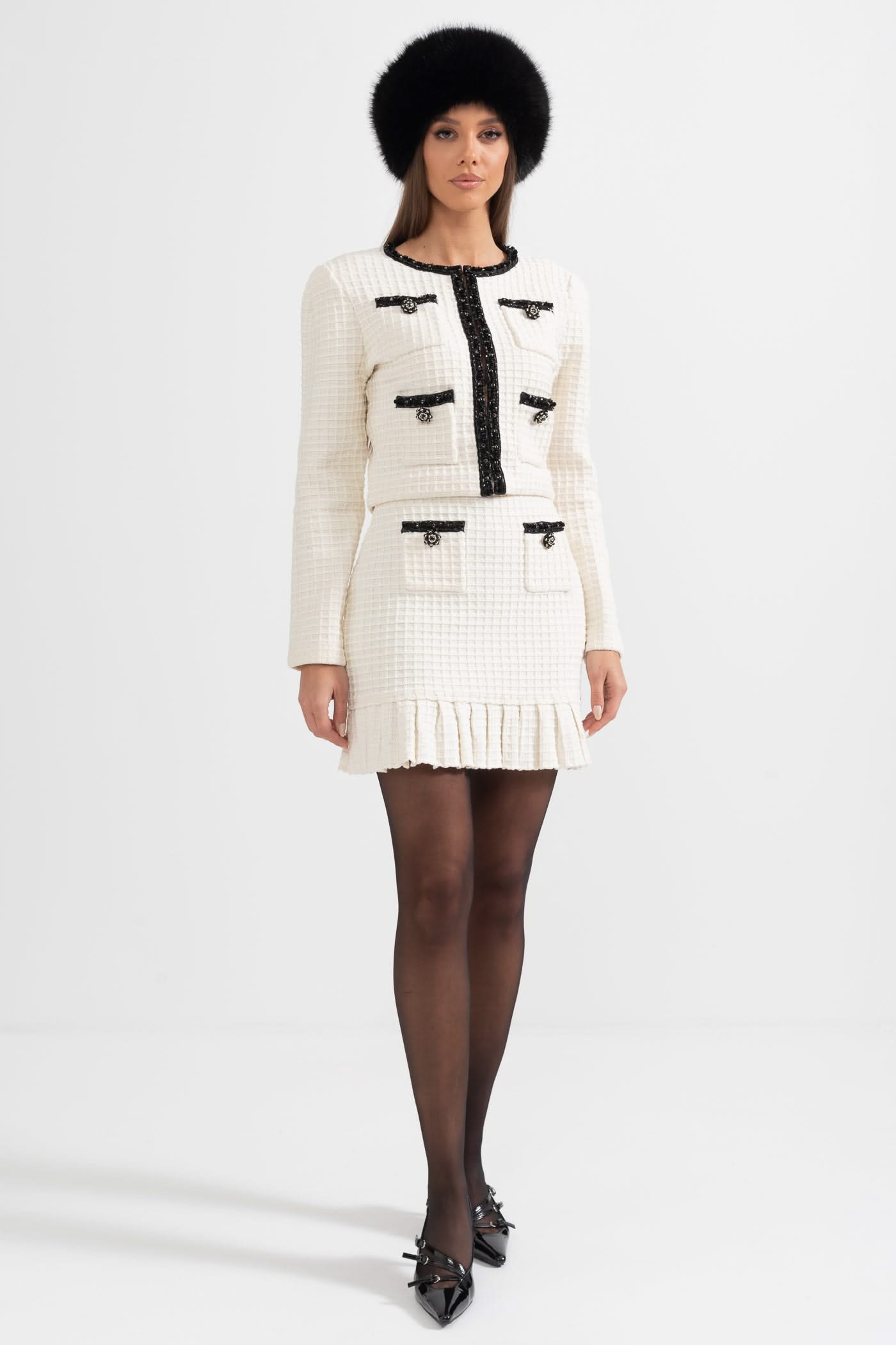 Siyah Detaylara Sahip Tweed Takım - Fildişi
